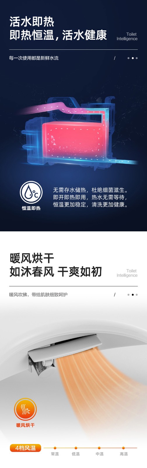 6、4檔風(fēng)溫、水溫、座溫可調(diào)節(jié)、